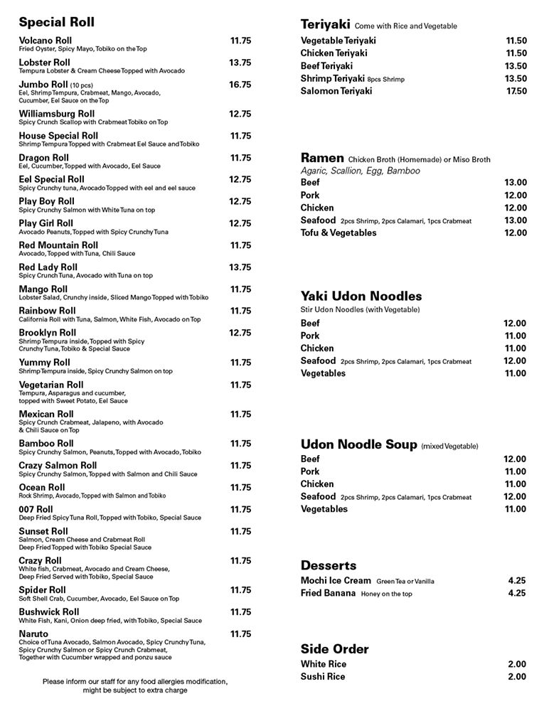 Sushi & Noodles is a cozy, laid-back sushi spot in Brooklyn that offers a variety of lunch options including Sushi Sashimi Lunch, Maki Lunch, and Lunch Box specials. Customers rave about their signature rolls like the lobster roll and sunset roll, along with favorites like shrimp tempura and beef udon. The restaurant has a chill vibe with great service and affordable prices, making it a go-to spot for locals. Reviews mention delicious dishes like the Bushwick roll, tuna roll, miso soup, and JalapeƱo Salmon Roll. The menu offers a good value for quality rolls with generous portions of fish. Overall, Sushi & Noodles is a fantastic choice for a casual dining experience with excellent food and attentive staff.